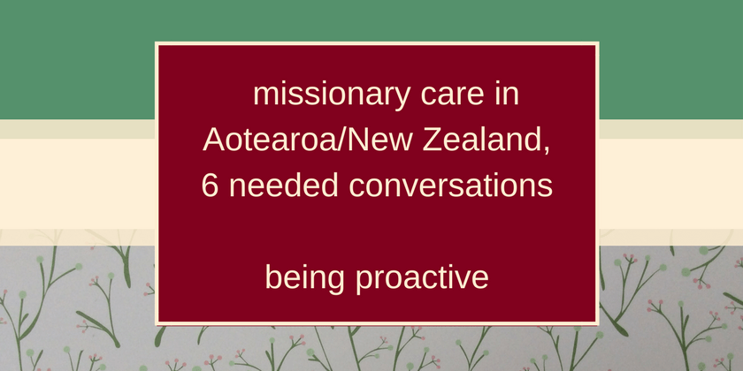 Conversations around shaping a proactive approach would also consider what training and support missionaries need not to just survive but to develop and grow. If we have a focus solely on caring for individual care, we often neglect to have the tough conversations that we need to have to enable further growth in our workers. Just as we encourage our children to grow in their own ability to care for themselves as part of our care and love for them, we also need to be supporting growth and independence in our missionaries. Care doesn’t necessarily just mean offering support when they have a crisis or need, care can also involve challenge and calls for growth, and to take responsibility for their own self-care.