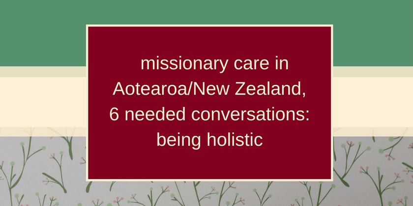 In September I attended the Second South Pacific Membercare Conference. A conference for all those involved in missionary care in Australia, New Zealand and across the pacific. I have spent a lot of time over the last 8 years reflecting on member care, particularly thinking about its foundations and definition. For New Zealand to lead the way in member care there are six foundations that we need to discuss and gain increased understanding on. My previous posts have considered what it means to be developing professionalism, being proactive and being locally grounded and globally informed. In today’s post I want to start thinking and talking about the holistic nature of missionary care.